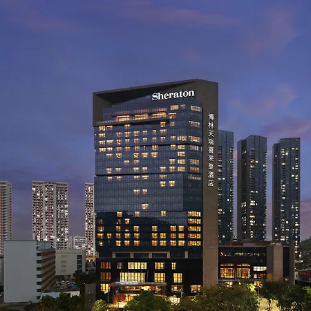 Situated in the Nanshan district of Shenzhen, 4.4 km from the Yanhanshan Country Park, the 5-star smoke-free Sheraton Shenzhen Nanshan hotel boasts a shared lounge and a golf course. The pleasant hotel lies nearly a 25-minute walk from the air zoo "Shenzhen Safari Park", and offers a pizza restaurant and an indoor pool onsite.